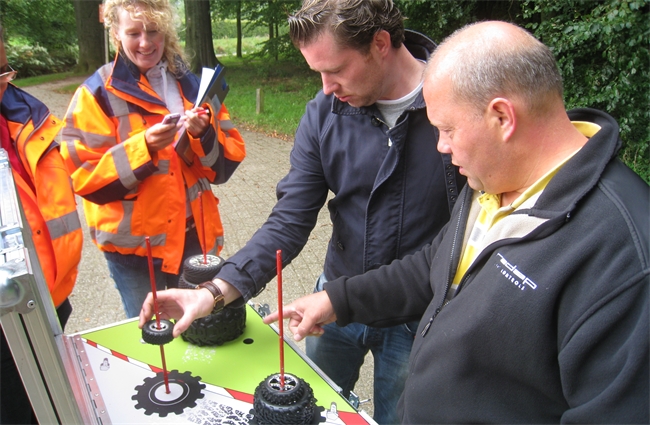 Blind fileparkeren. Vertrouwen op je bijrijder en mede-passagiers. Cabrio-schieten. Behendigheidsspel om gezamenlijk veel punten te behalen. Bandenwisselspel. Alleen met elkaar kun je in korte tijd de juiste banden in de juiste volgorde leggen. Labyreend. Houdt het spel en het team in balans.